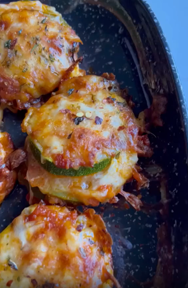 A low-carb, keto-friendly, perfectly portioned mini pizza alternative made with simple layers of zucchini, sauce, cheese, and protein. Ideal for snacks, meal prep, or light lunches.