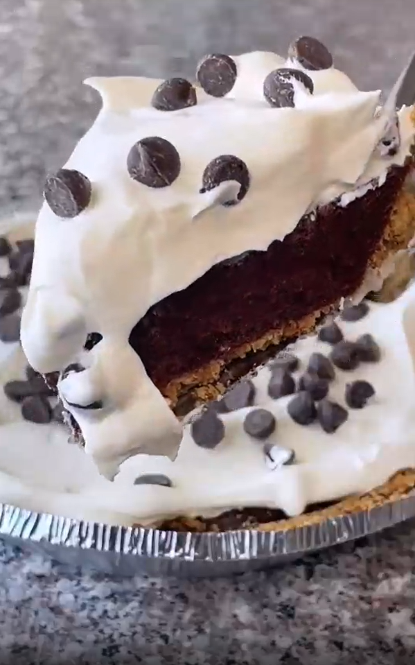 A thick, creamy chocolate pudding pie made with protein shakes and sugar-free pudding, all nestled inside a nutty pecan crust.