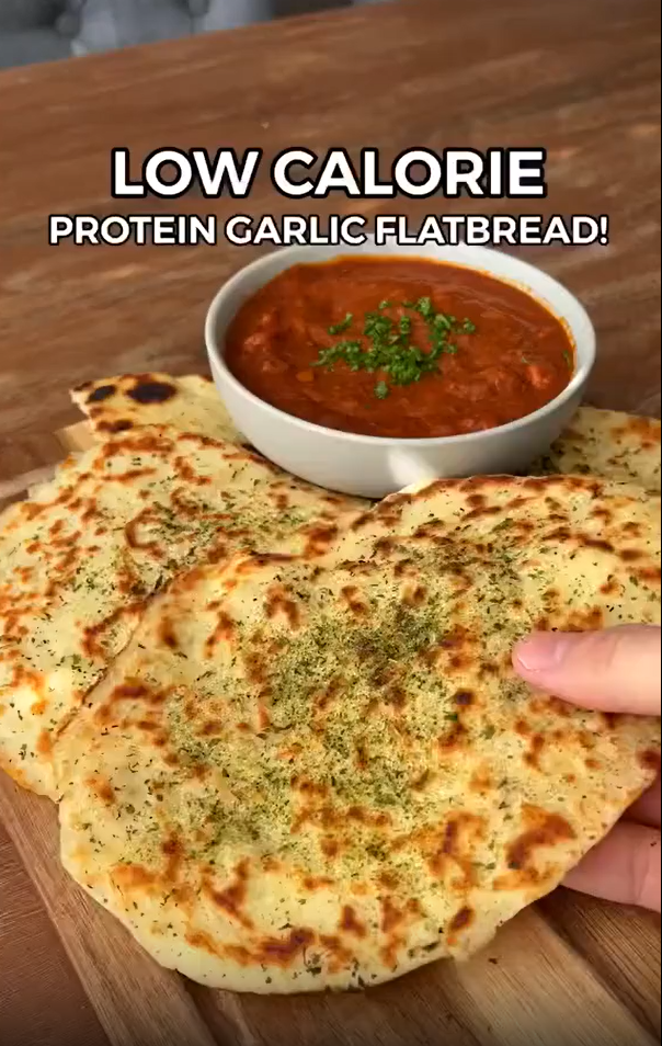 This quick and easy flatbread is perfect for boosting your protein intake while keeping calories low! With just 6 simple ingredients, you can make two tender, flavorful garlic flatbreads that are great for dipping or as a light base for any meal. Each serving is only 122 calories and contains over 10 grams of protein.